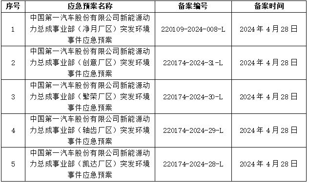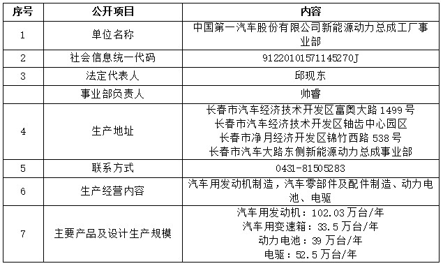 中国第一汽车股份有限公司新能源动力总成事业部环保信息公开(2024年度)
