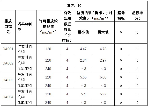 主要污染物排放浓度情况详见表3至表6。