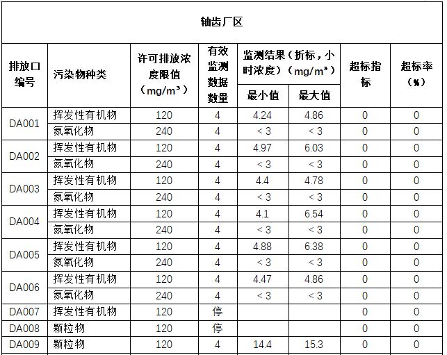 表4  2024年新能源动力总成事业部废气污染物监测相关数据