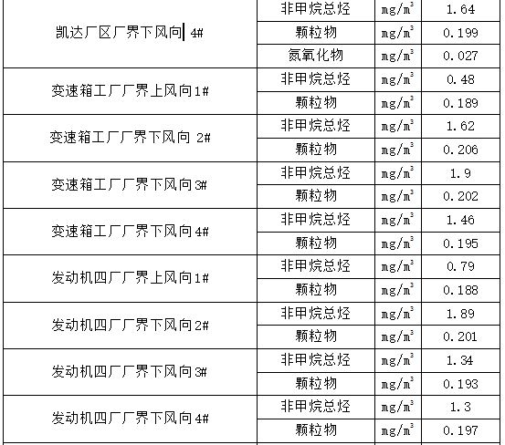 表5  2024年新能源动力总成事业部无组织废气监测相关数据