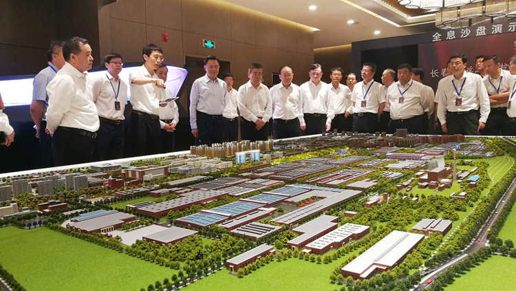 集团公司领导和嘉宾观看红旗小镇沙盘
